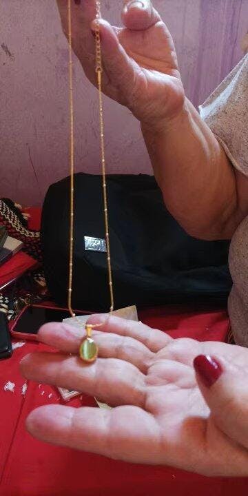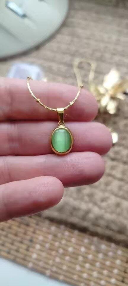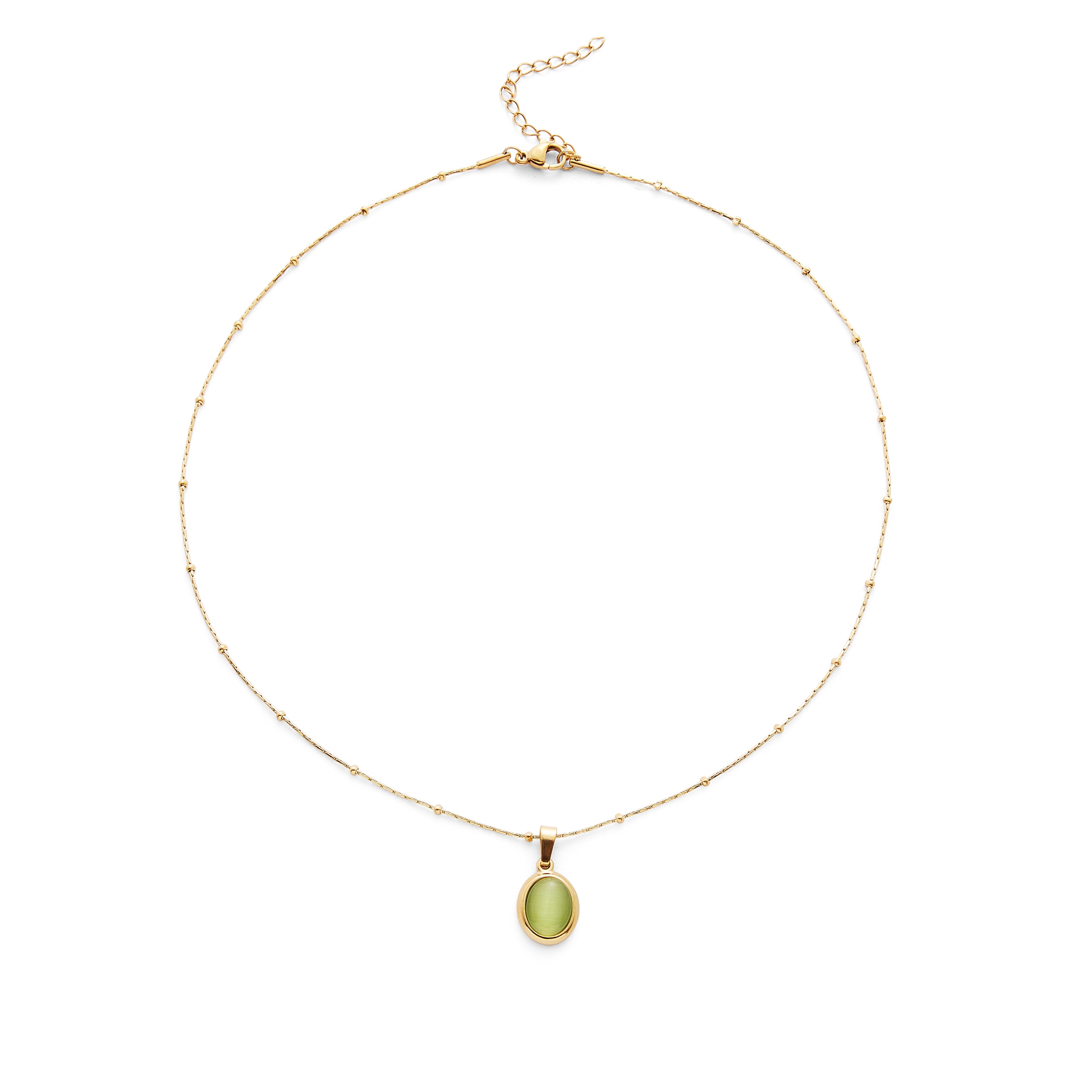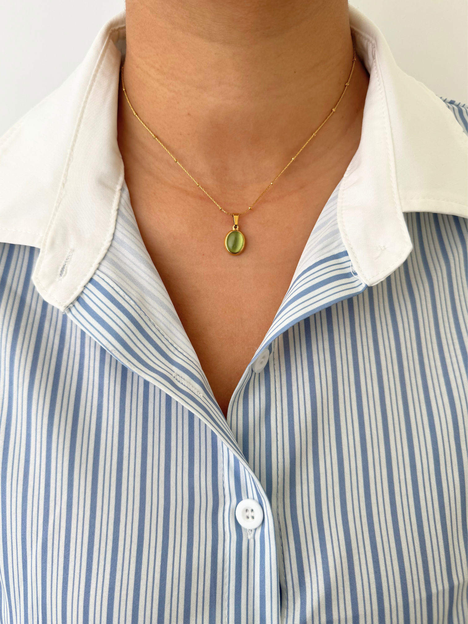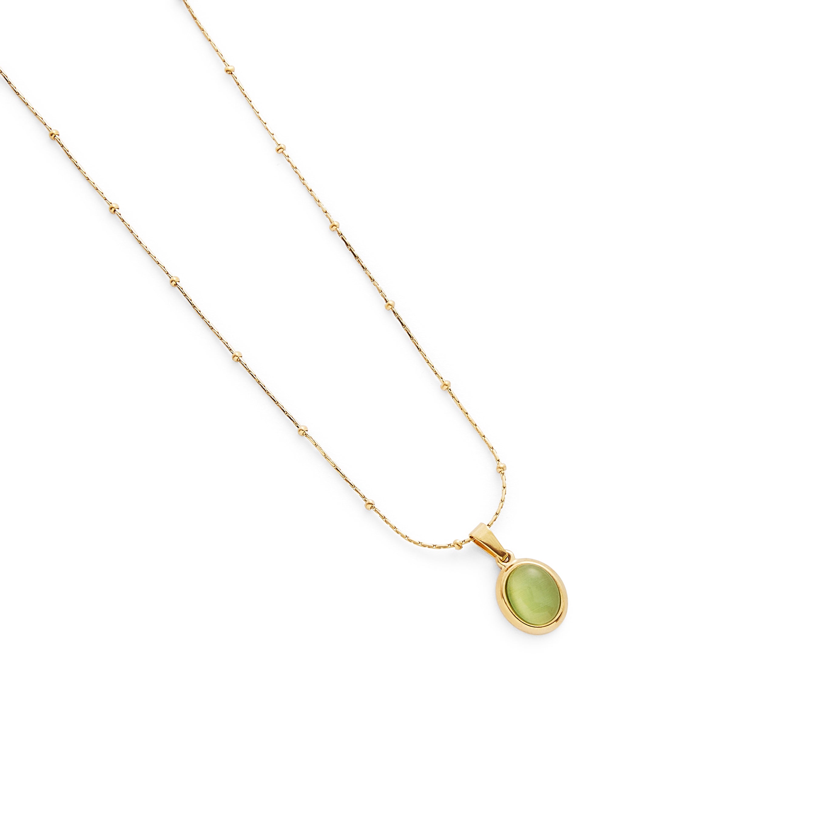 Rooted in simplicity, this pendant draws inspiration from natural tones - offering a grounded yet elegant touch to your look. The soft olive tint pairs seamlessly with both warm and cool palettes, making it a versatile staple in any collection.